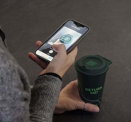 Du laddar ner &REPEAT’s mobilapp och scannar förpackningarnas QR-kod för att starta ditt lån.