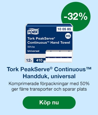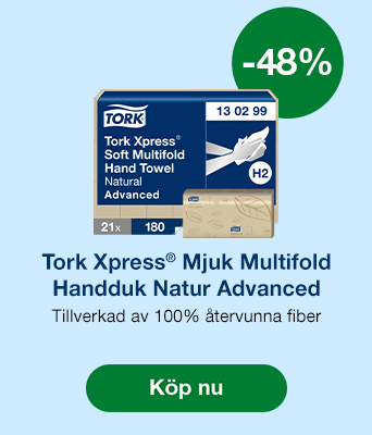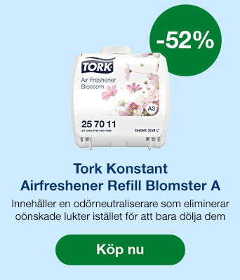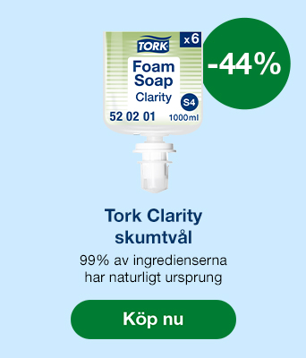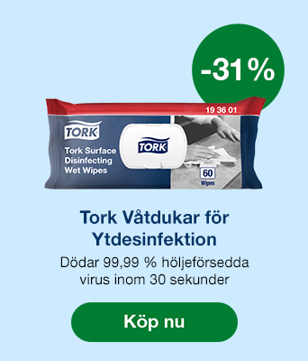 Renlighet innebär inte enbart god hygien. Det innebär också ökad trivsel på arbetsplatsen. Hållbara hygienlösningar från Tork hjälper dig att uppnå båda delarna. Vi har alla hygienlösningar ni behöver för att möta medarbetarnas förväntningar, överallt på er arbetsplats. I AllOffices Tork sortiment hittar du bland annat handdesinfektion till receptionen, avtorkningsprodukter för mötesrummen, och toalettpapper, tvål och pappershanddukar till era toalettutrymmen. Som en del av Essity, ett av världens mest hållbara företag, kan produkter och tjänster från Tork dessutom minska ditt företags miljöpåverkan och bidra till ett cirkulärt samhälle. Välj Tork och få hygienlösningar som är hållbara både för företaget och miljön.