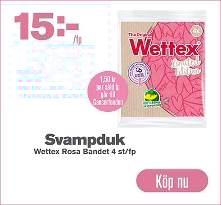 Varje år under oktober genomför Cancerfondens Rosa Bandet en kampanj med syfte att samla in pengar för cancerforskningen. Vi har valt att stödja detta viktiga syfte genom att vara Rosa Företagsvän samt erbjuda några populära produkter till förmån för forskningen. Var med du också! Välj våra rosa varor när du handlar och bidra till att driva svensk cancerforskning framåt. Du hittar produkterna både i webbutik och våra lokala butiker. Genom att köpa våra rosa varor bidrar du till forskningen Rosa Bandet. Alla kan göra något!