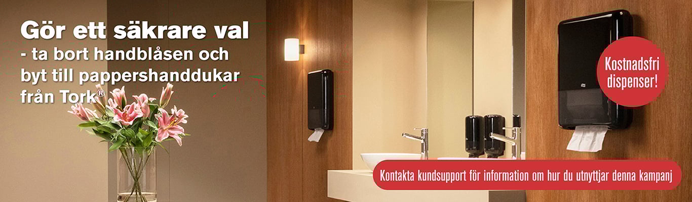 Handblåsar producerar en större mängd luftburna droppar, som i sin tur ökar risken för smittspridning. Handblåsar (JAD) sprider upp till 10 gånger mer bakterier än användning av pappershanddukar. Gör ett säkrare val - ta bort handblåsen och byt till pappershanddukar från Tork.