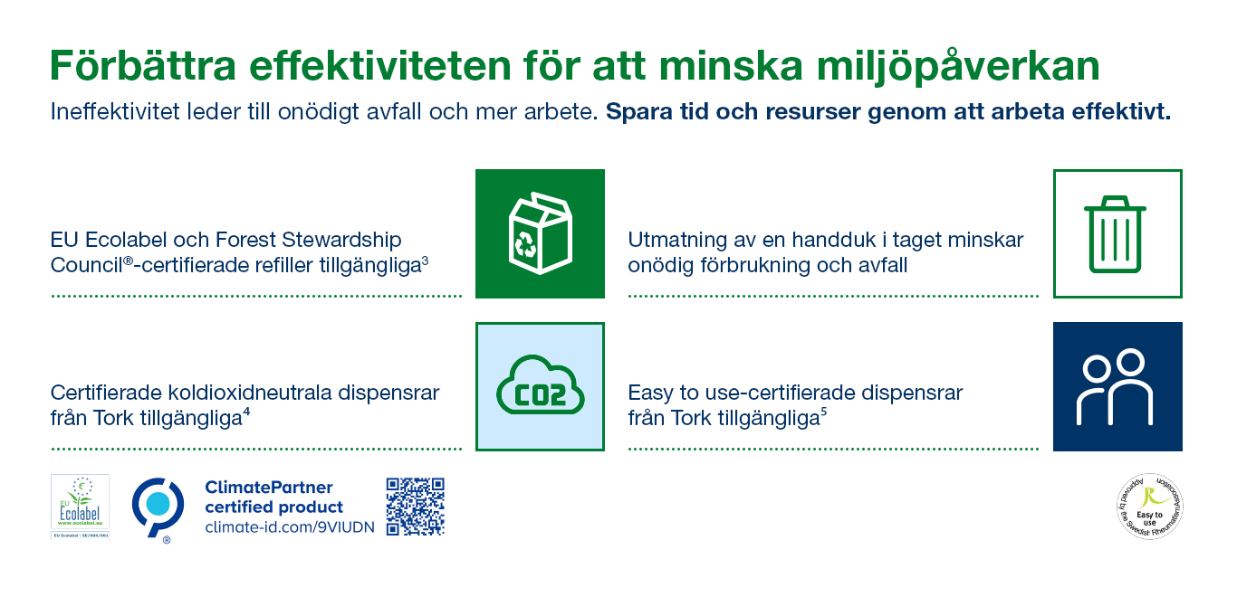 Produkter från Tork är designade för att hålla bakterier och virus i schack och säkerställa en ren och trivsam arbetsmiljö.