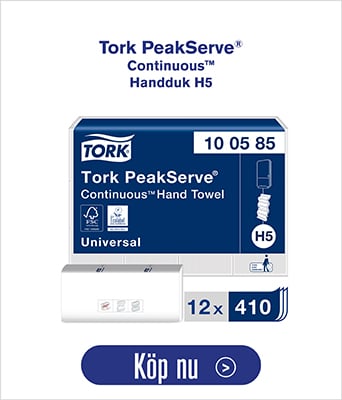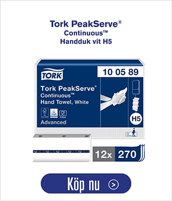 Den senaste nyheten, pappershanddukar i Advanced-kvalitet ger dig mjukt papper med 20 % bättre absorptionsförmåga jämfört med Tork PeakServe refillhanddukar i Universal-kvalitet. Tillsammans med handduksdispensrar i tre olika format kan du tillämpa hela systemet på olika platser inom en och samma anläggning.