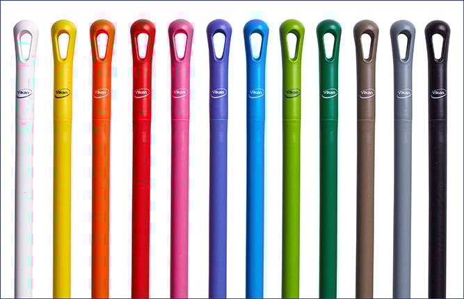 Vi avråder från att kombinera färger på enskilda redskap eller grupper av redskap. Istället rekommenderar vi att du använder samma färg för både skaft och t.ex. sopborst- eller skraphuvuden.